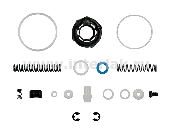 Набор уплотнений для пневматических краскопультов Huberth модели RP16000GL. В набор входят уплотнительные и стопорные кольца, пружины, сальники, воздухораспределительное кольцо, поршень, клапан, винты.