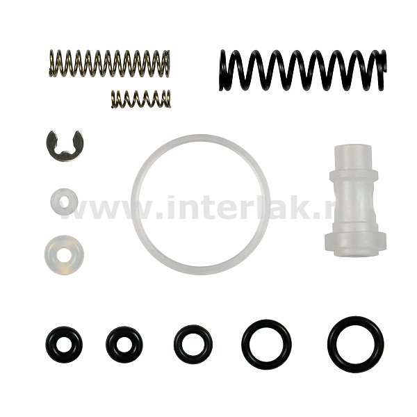 Набор запасных частей для пневматических краскопультов Huberth модели R100 (арт. RP20100-0.8). В набор входят уплотнительные и стопорные кольца, пружины, корпус клапана.