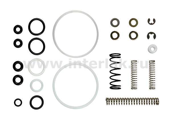 Набор уплотнений для пневматических краскопультов Huberth модели RP123FLG. В набор входят уплотнительные и стопорные кольца, пружины, сальники.